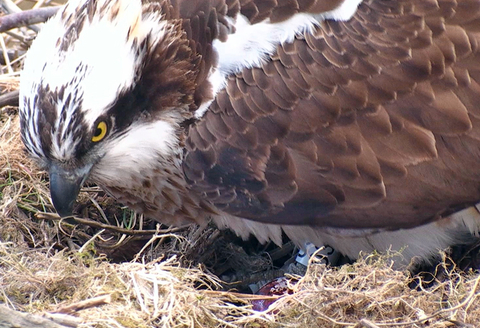 The weather throughout Wednesday, 18th April, had been pretty average. Overcast, windy, and rather cold. Monty and Nora got on with everyday life but from around 4pm, Nora really had the fidgets. Restless, agitated, moving from one side of the nest cup to the next - her feathers were ruffled, one of them was awry. She paid scant attention, clearly something else was on her mind.