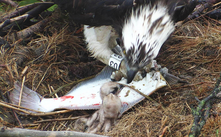Every year, we record what species and size of fish the Dyfi ospreys catch. Roughly speaking, around half are grey mullet, 20% are flounder and 20% are trout. The other 10% consist of other fish like sea bass, garfish and perch.