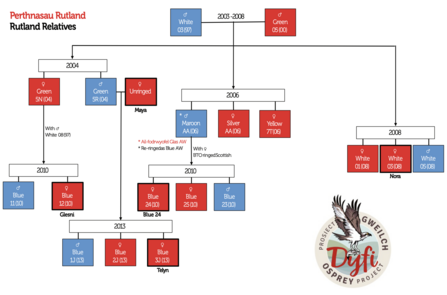 The family tree below shows how important the Rutland Osprey Translocation Project was in helping the recovery of ospreys in Wales.